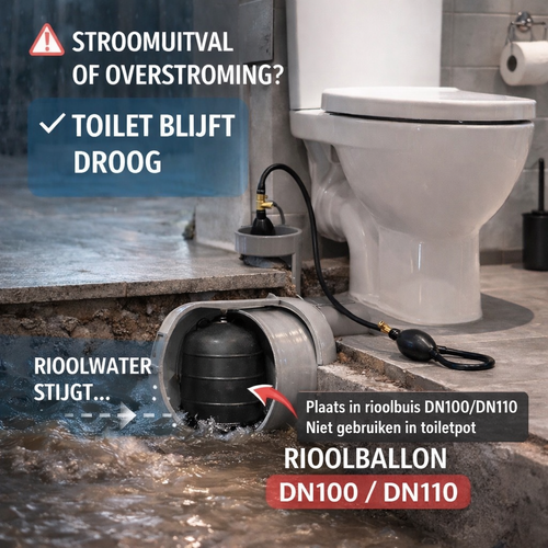 Bij een langdurige stroomstoring of hevige regen kan rioolwater via de afvoerleiding terug je woning in komen. Met een rioolballon sluit je de afvoer tijdelijk af en voorkom je dat vuil water omhoog komt.