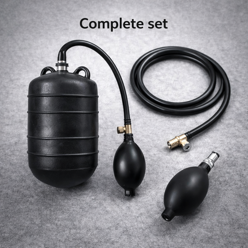 De ballon blijft via de slang verbonden met de pomp, waardoor je hem altijd weer kunt laten leeglopen en verwijderen.
